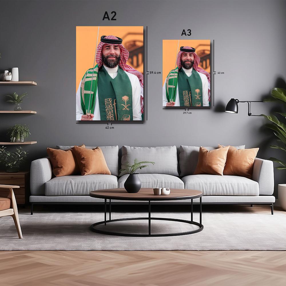 - تصميم فني رائع: تظهر اللوحة بنزيما في الثوب السعودي، مما يضيف لمسة خاصة ومتجددة تتناسب مع عشاق هذا اللاعب الكبير.
